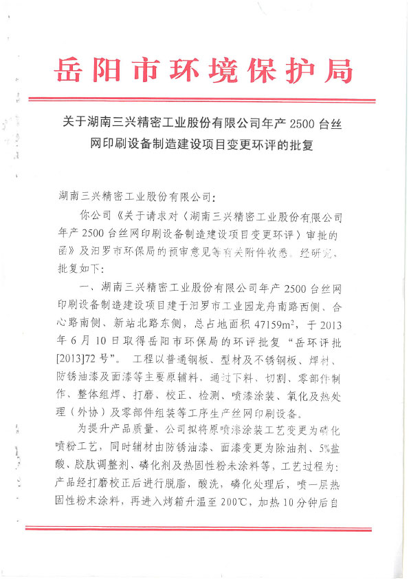千亿·(中国)手机网页版印刷设备制造建设项目批复报告